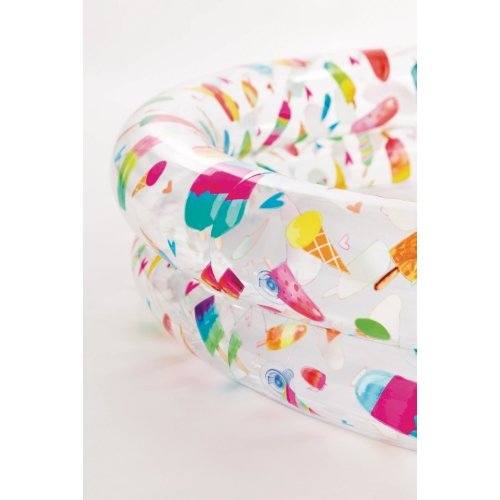 Klasyczny ogrodowy basen w kolorowe wzory zainteresuje każde dziecko, zapewniając doskonałą zabawę w letnie dni. Dwie niezależne komory basenu powietrzne zadbają o komfort spędzania wolnego czasu na świeżym powietrzu, zapewniając wymarzony relaks podczas upałów.