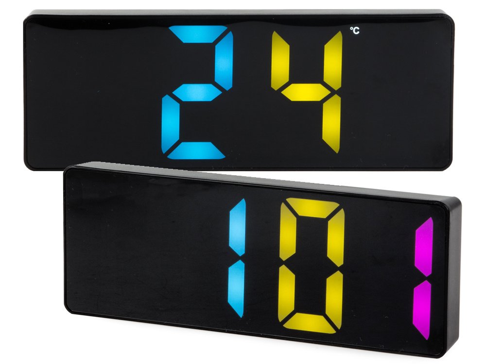 Nowoczesny zegar budzik LED łączy stylowy wygląd z praktycznym zastosowaniem. Kolorowy" />