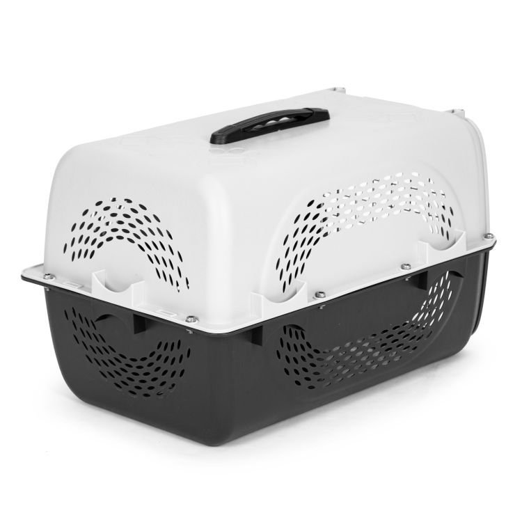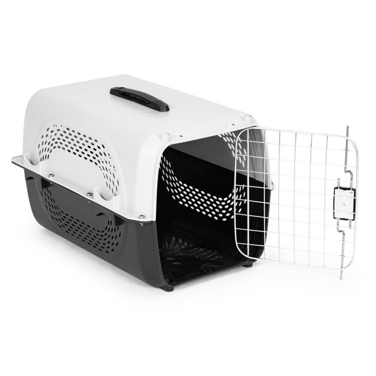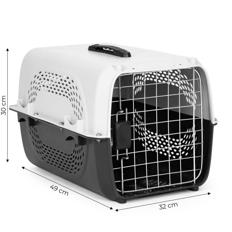 Duży transporter dla zwierząt marki Petsi to idealne rozwiązanie dla podróżujących z kotami lub psami. Produkt ten charakteryzuje się wytrzymałą i bezpieczną konstrukcją, wykonaną z solidnych, nietoksycznych materiałów. Transporter jest wyposażony w liczne otwory wentylacyjne, zapewniające odpowiedni przepływ powietrza, oraz ryglowane drzwiczki z solidnym zapięciem, co gwarantuje bezpieczeństwo zwierzęcia. Maksymalna waga transportowanego zwierzęcia może wynosić 12 kg. Kolor biało-czarny nadaje mu elegancki wygląd, a wygodny uchwyt transportowy ułatwia przenoszenie. Transporter jest łatwy do utrzymania w czystości, co czyni go praktycznym wyborem dla właścicieli zwierząt.