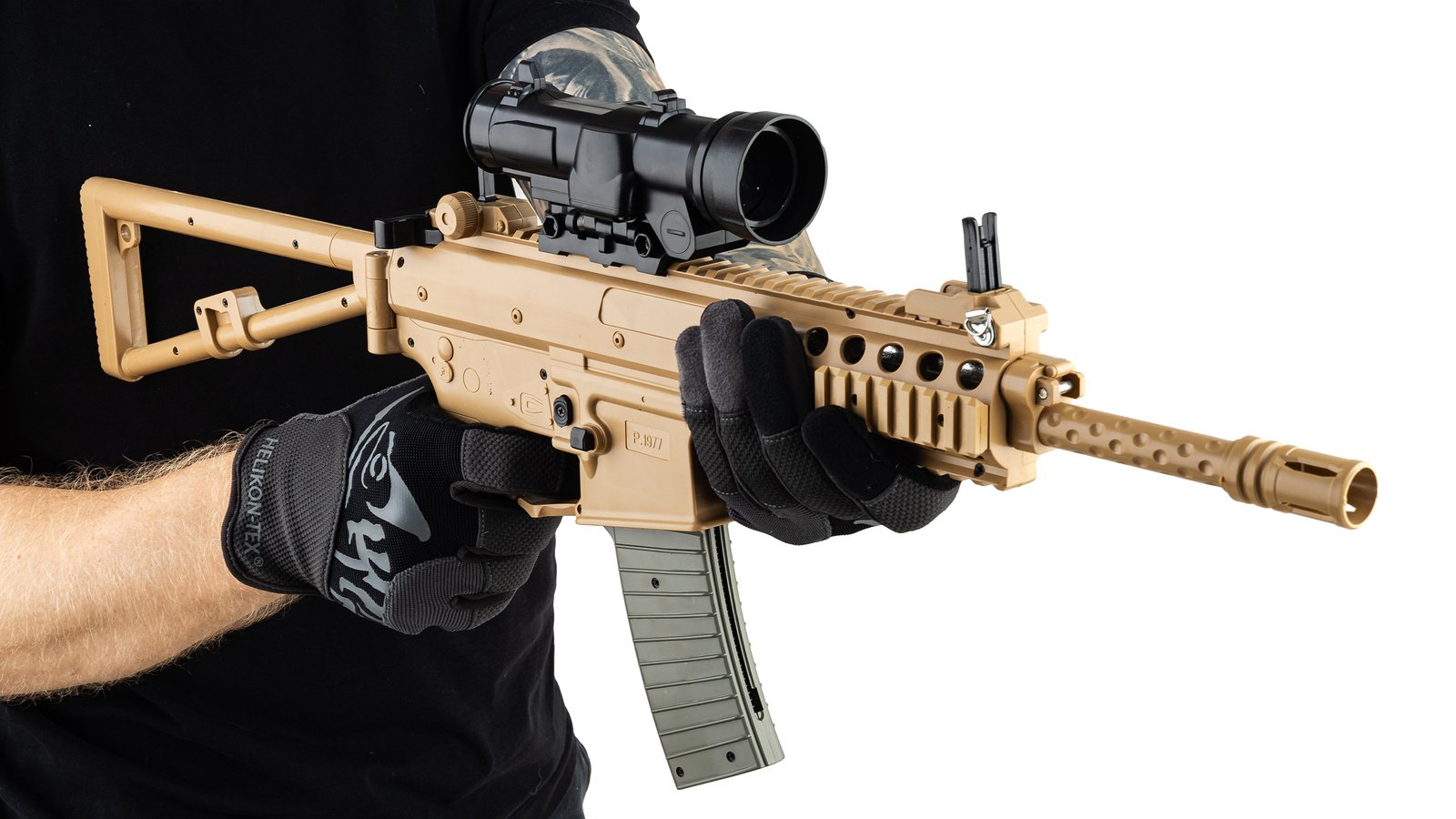 Replika karabinu szturmowego Double Bell BI-8002 przeznaczony do zadań specjalnych. Ten wojskowy styl karabinu to nie tylko świetny wygląd, ale także trwałość i niezawodność, które są niezbędne w każdej sytuacji. Jeśli szukasz niezawodnego karabinu do zabawy lub treningu, ten jest doskonałym wyborem.