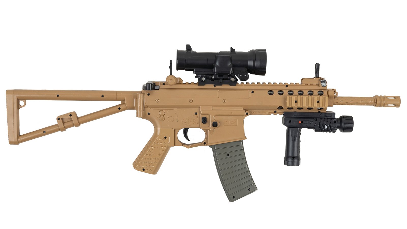 Karabin posiada mechanizm sprężynowy z Systemem Hop Up, jest to innowacyjny system poprawiający osiągi strzelby, dzięki temu systemowi wystrzelona kulka zostaje wprowadzona w ruch rotacyjny co poprawia celność i zasięg. Strzelba wykona jest z najwyższej jakości plastiku co wyróżnia ją na tle konkurencji.