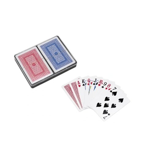 Zestaw zawiera 2 x 54 karty, standardowe 52 oraz 2 jokery.