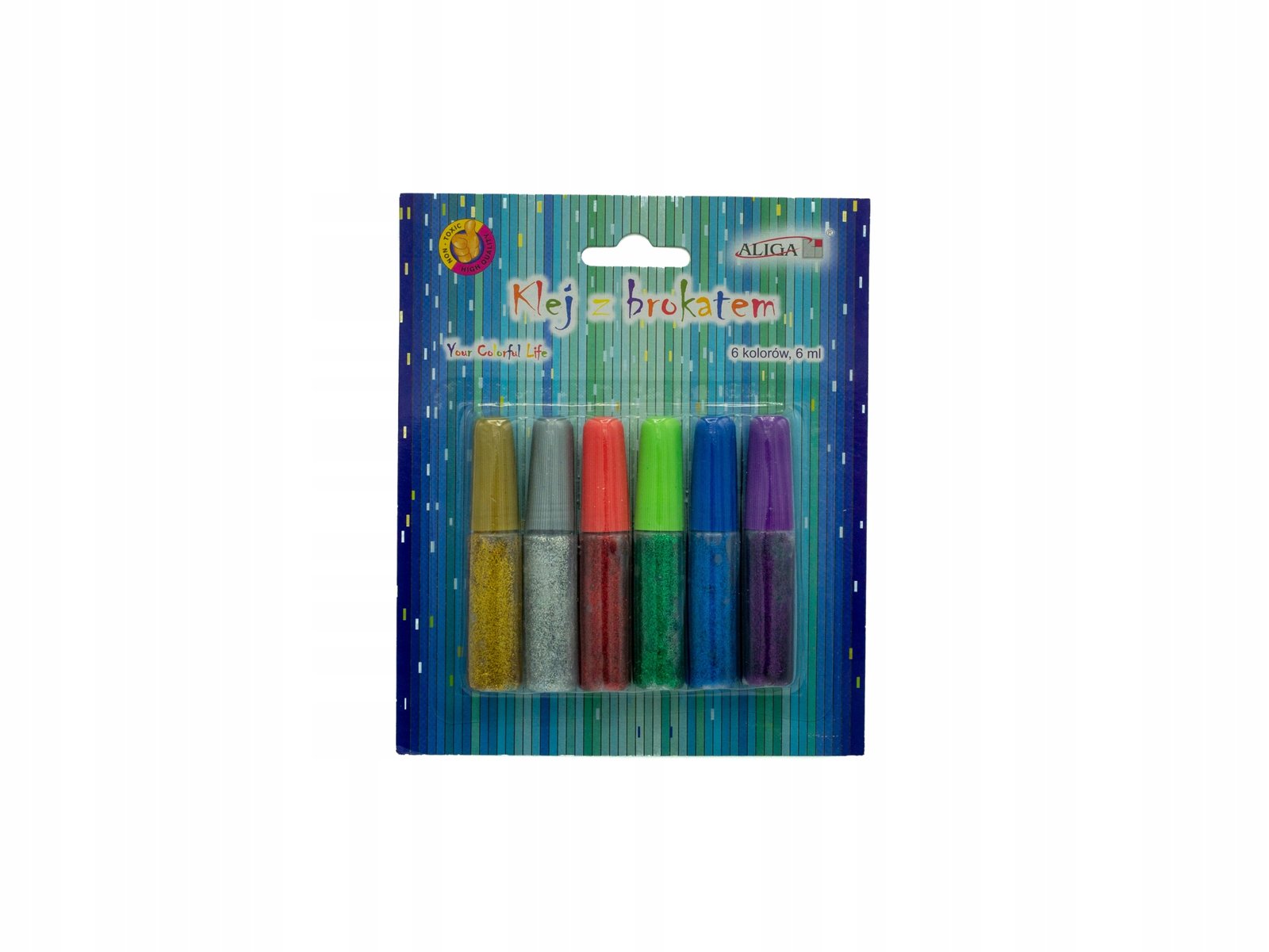 Jeden blister zawierający 6 tubek kleju z brokatem w różnych kolorach.