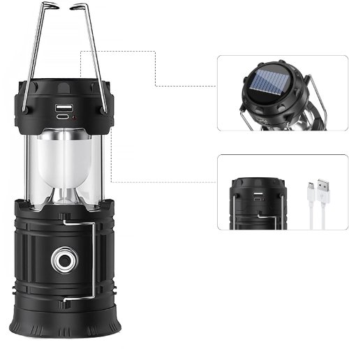 LAMPA WISZĄCA SOLAR STOJĄCA USB LEDOWA POD NAMIOT NA KEMPING Z POWERBANKIEM I UCHWYTEM
