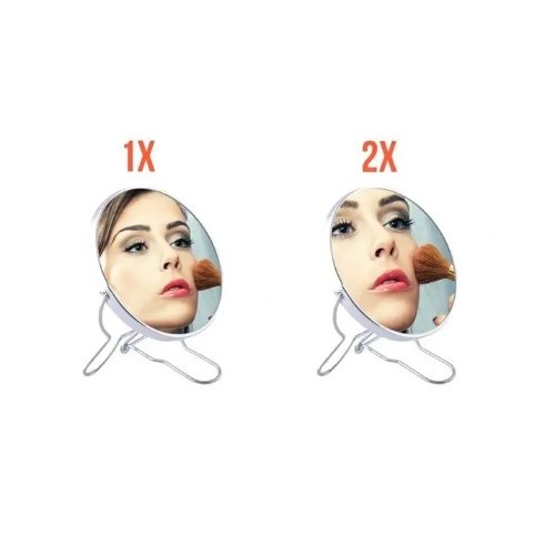 Dwustronne powiększające lusterko do makijażu.