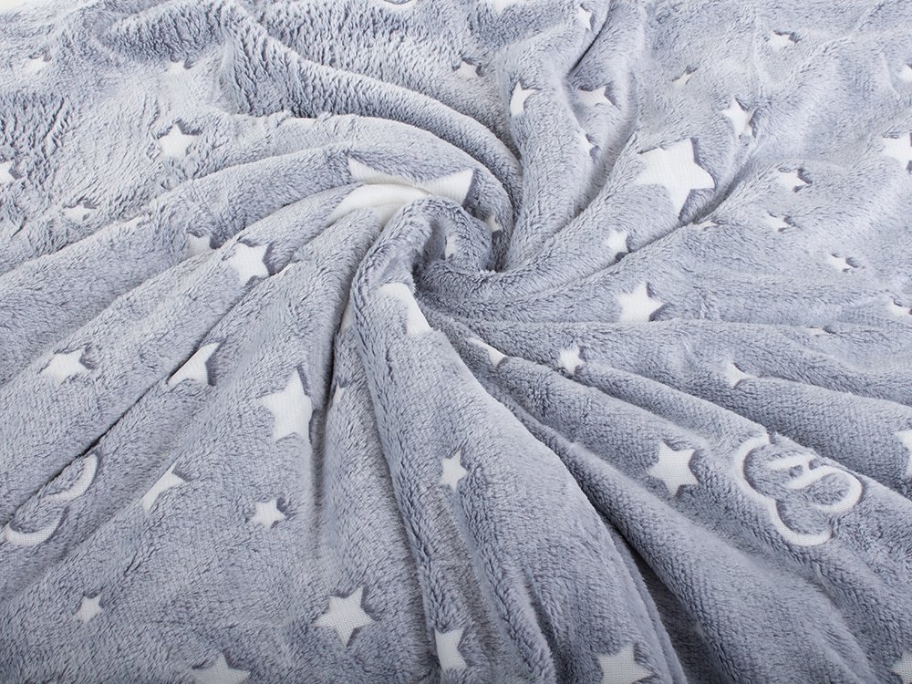 Dwustronny koc fluorescencyjny - Szary w gwiazdki - Pranie w pralce -