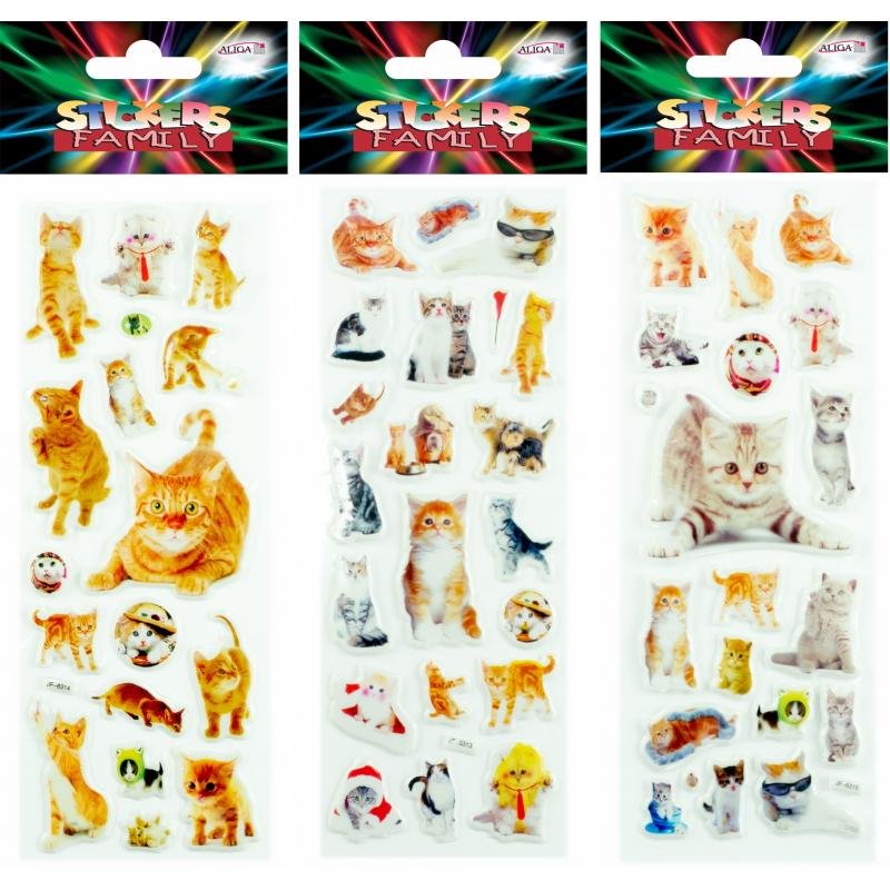 Uroczy zestaw wypukłych naklejek z motywem kotów, który zachwyci każdego miłośnika tych czworonogów.
