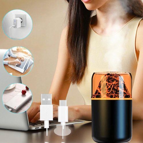 🌋 Przemień swoje wnętrze w oazę spokoju dzięki unikalnemu połączeniu nawilżania, aromaterapii i hipnotyzującego efektu płomienia wulkanu.