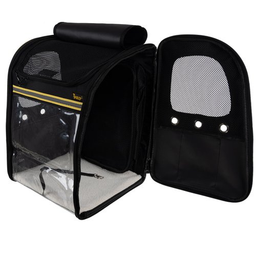 Przezroczysta przegroda umożliwia zwierzakowi obserwację otoczenia, a dodatkowe