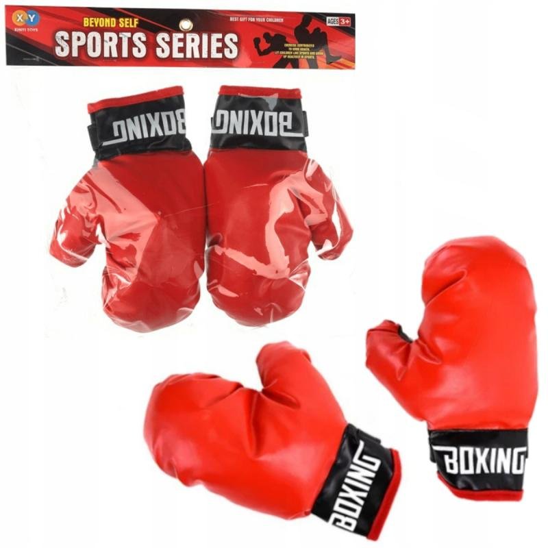 Zestaw zawiera parę (2 sztuki) rękawic bokserskich w kolorze czerwonym z czarnymi wykończeniami.