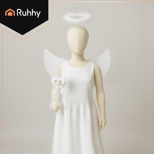 Produkt został zaprojektowany z myślą o wygodzie i efekcie wizualnym. Tekturowy stelaż skrzydeł zapewnia im odpowiedni kształt przy zachowaniu minimalnej wagi. Elastyczne gumki pozwalają na szybkie i łatwe założenie stroju. Aureola umieszczona na uniwersalnej opasce stabilnie trzyma się na głowie, nie powodując dyskomfortu.