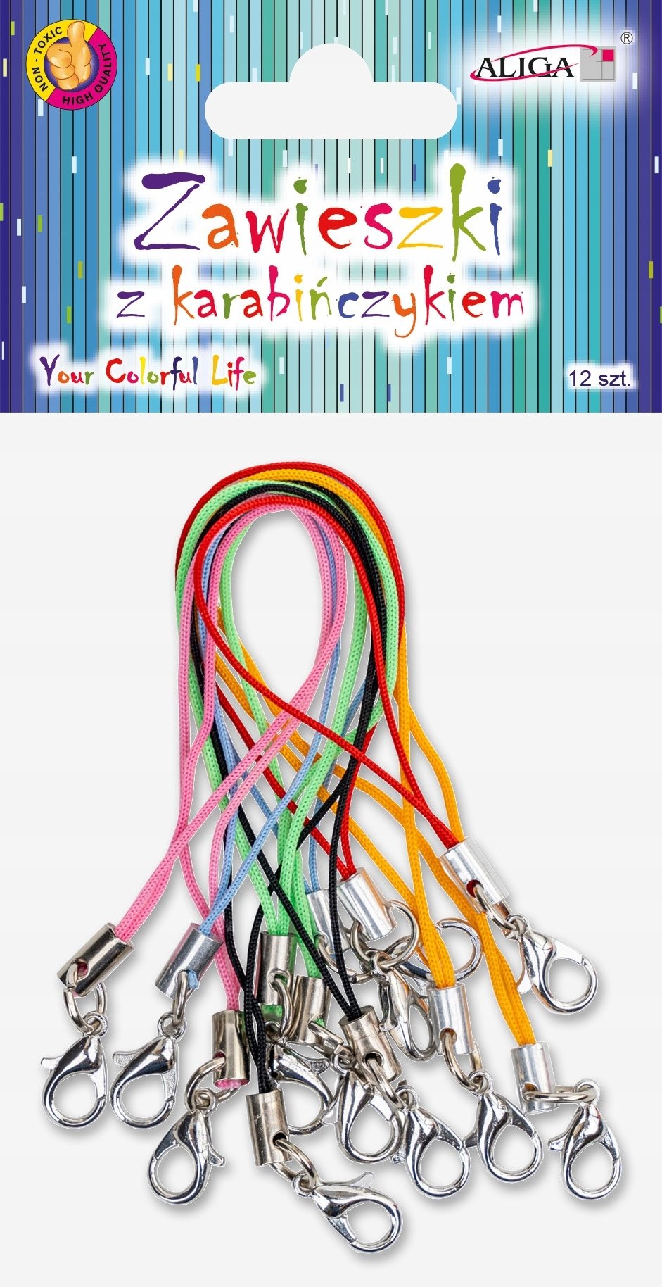 12 sztuk zawieszek smyczowych z karabińczykiem w mixie kolorów.