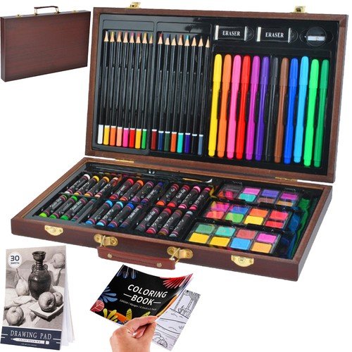 Zestaw do malowania i rysowania to wspaniała rzecz na początek artystycznej przygody. Komplet jest funkcjonalny i składa się łącznie z 81 przydatnych części. Duża ilość elementów umożliwia praktyczne wykorzystanie i pozwoli realizować rozmaite, kreatywne pomysły. Przy pomocy 24 pasteli olejnych, 16 kredek ołówkowych, 24 farb akwarelowych, 12 flamastrów, 2 pędzli, temperówki oraz 2 gumek, kolorowanka oraz blok rysunkowy z łatwością stworzymy wymyślne i oryginalne prace. Przybory są wykonane z materiałów dobrej jakości oraz mają szeroką, atrakcyjną gamę kolorystyczną.