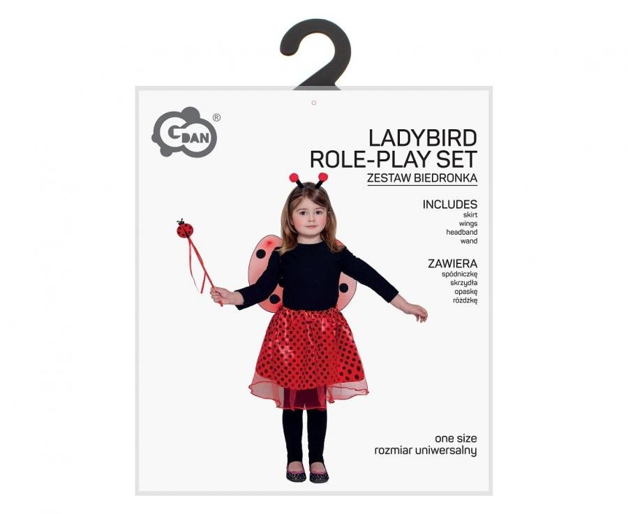 Gotowa do lotu! Ten uroczy, 4-częściowy zestaw w mgnieniu oka przemieni Twoje dziecko w wesołą biedronkę, gotową na bal, przedstawienie lub wiosenną przygodę w ogrodzie.